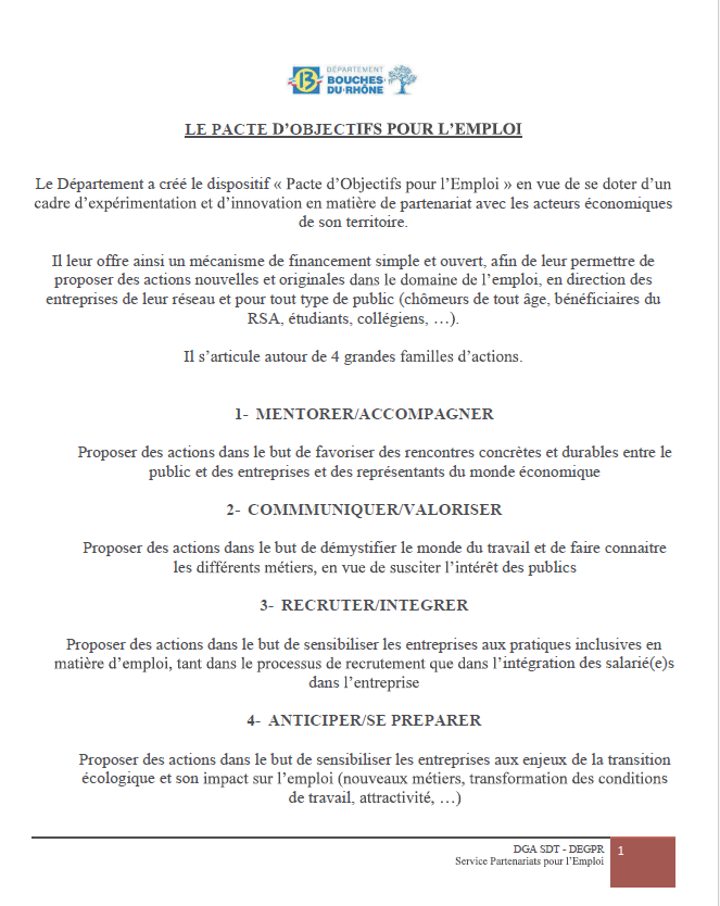 Le GIHVA signe tous les 3 ans un pacte d'objectifs pour l'emploi avec le Département des Bouches-du-Rhône pour travailler ensemble en direction des bénéficiaires du RSA et autres chercheurs d'emploi de la Haute Vallée de l'Arc.